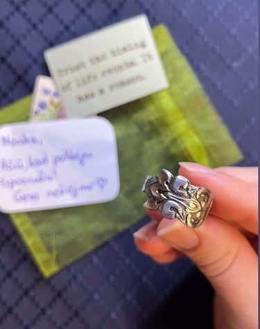 ”Esu sužavėta, labai puiki idėja ir unikalus žiedas, kurį norisi nešioti ne tik dėl patrauklumo, bet ir istorijos. Ačiū, nesustokite ir toliau stebinkite savo darbais!”